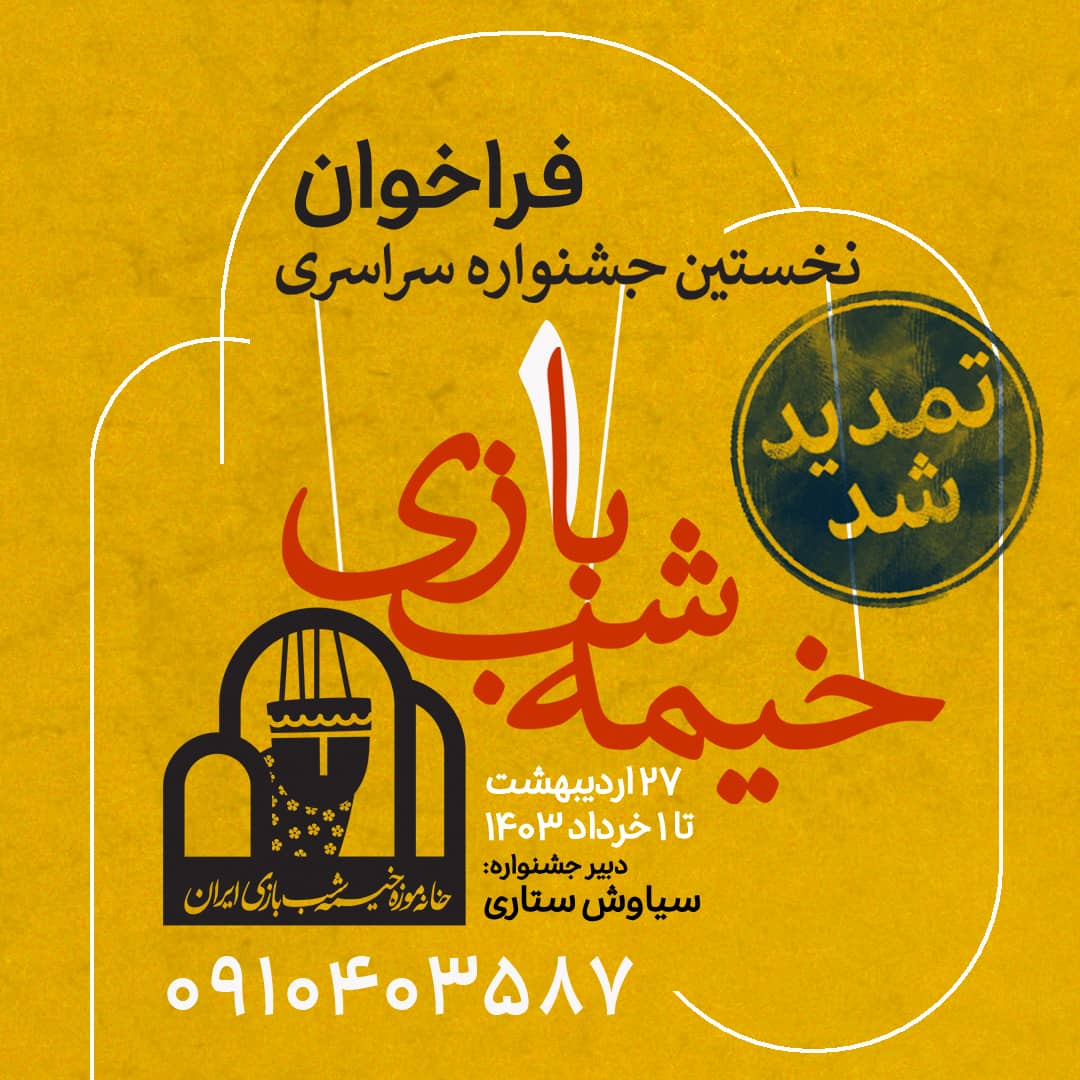لازم به ذکر است نخستین جشنواره سراسری خیمه شب بازی ایران از تاریخ 28 اردیبهشت تا ۱ خرداد ۱۴۰۳ در تهران برگزار می شود